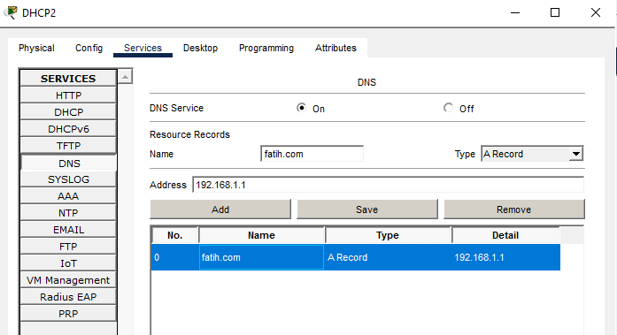 Membuat Konfigurasi Server DHCP Dan DNS dari Host Ke Client Pada Cisco Packet Tracer